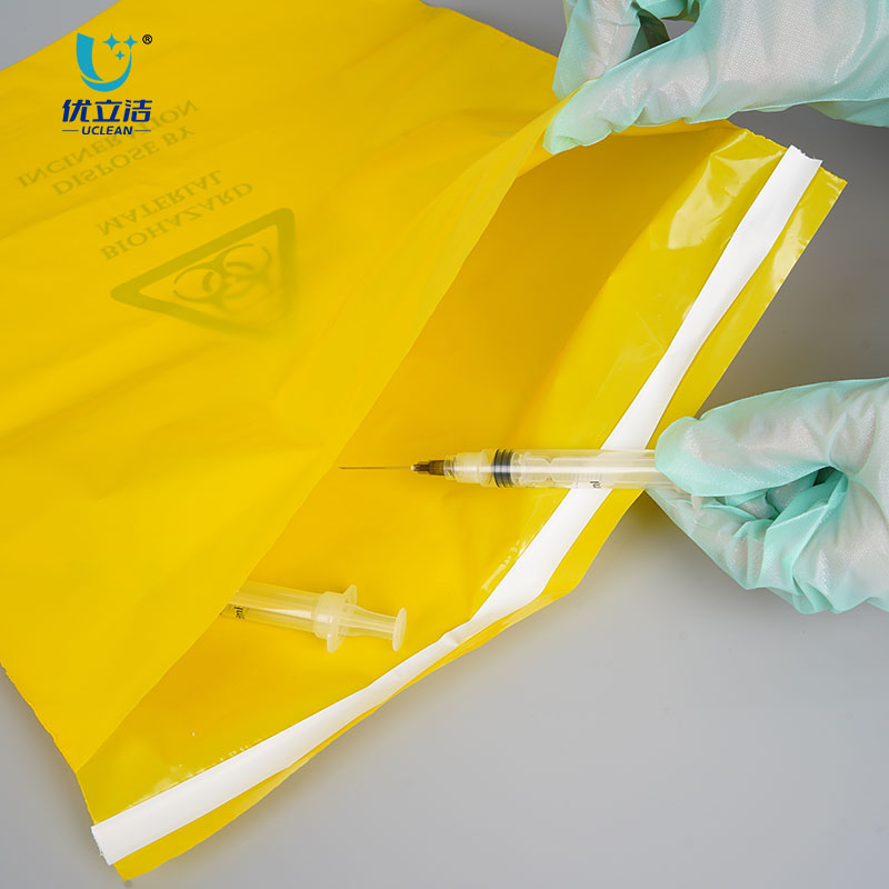 Специальная желтая клейкая лента для полиэтиленовых пакетов для биологически опасных отходов надежно герметизирует пакеты для медицинских отходов, обеспечивая безопасное хранение и соответствие санитарным нормам. утилизация опасные биологические материалы.